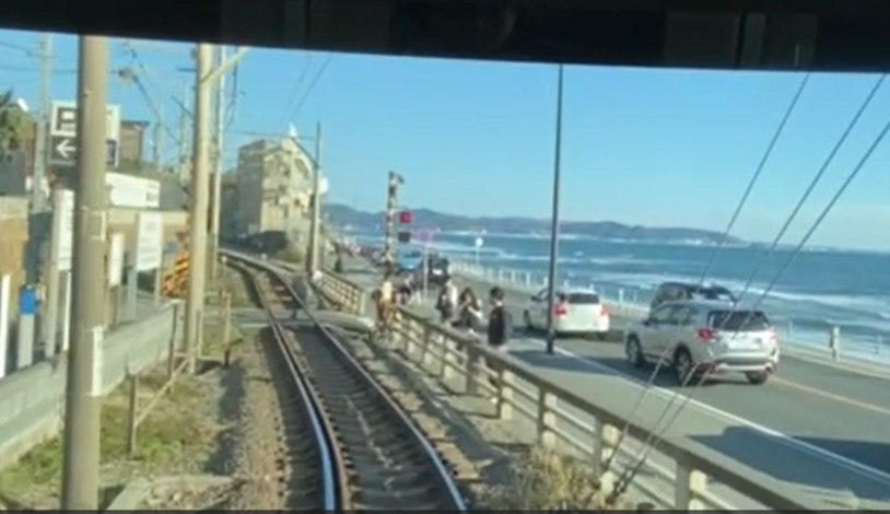 ภาพที่ 3 เส้นทางรถไฟ Enoshima Dentetsu Line ช่วงที่เลียบริมทะเล