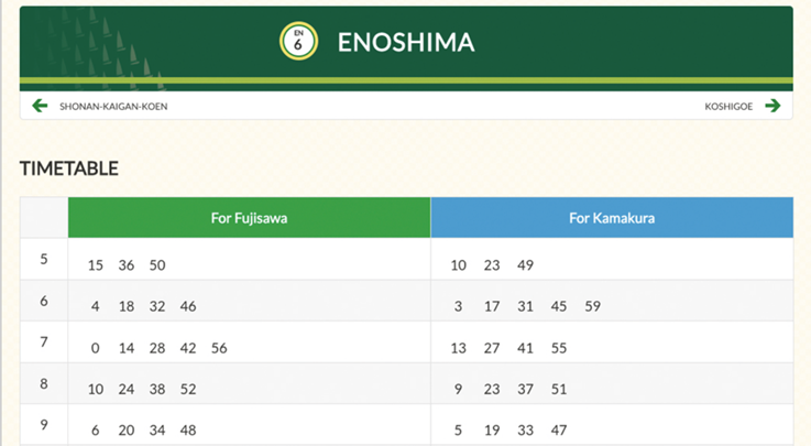 ภาพที่ 4 ตารางการเดินรถไฟ Enoshima