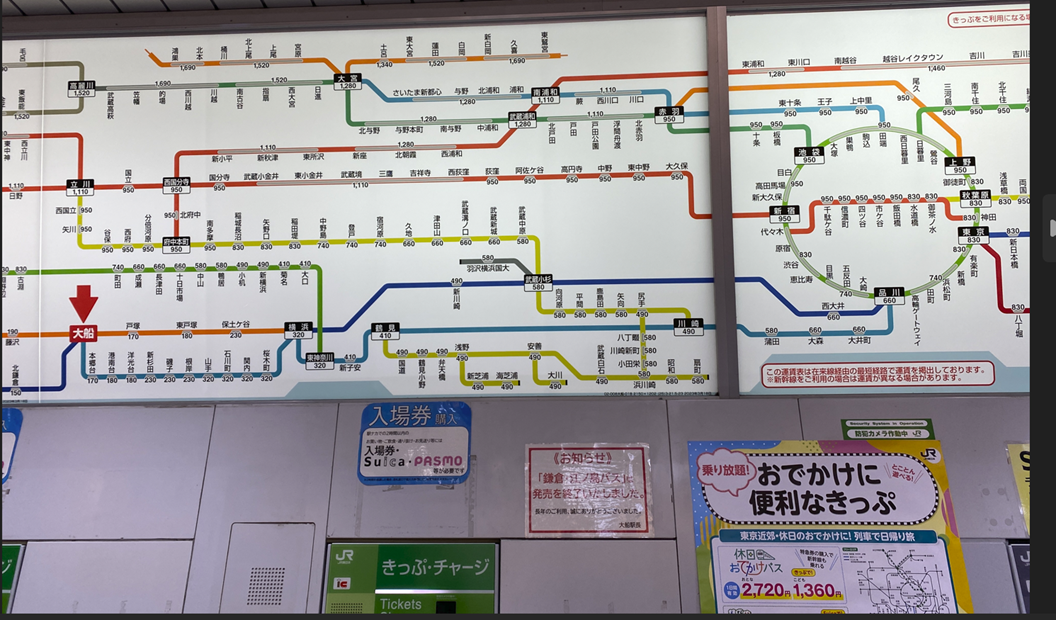 ภาพที่ 6: ราคาค่าเดินทางจาก Ofumi station ถึง Okachimachi Station (830 Yen)