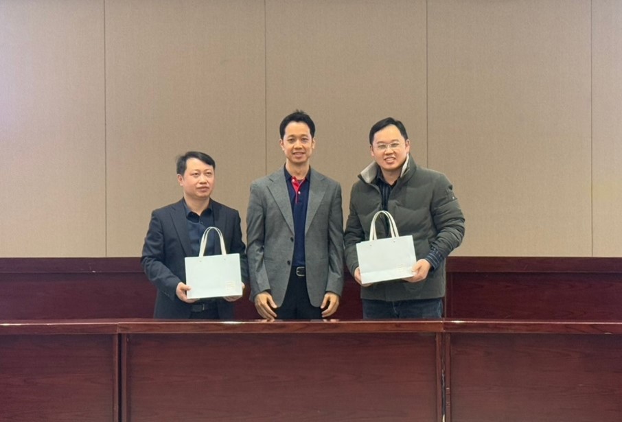 ภาพที่ 4 ผู้ช่วยศาสตราจารย์ ดร.พรศักดิ์ ศรีสังสิทธิสันติ หัวหน้าโครงการ TRRN ถ่ายภาพร่วมกับ Professor Huang Deqing (ขวา) และ Professor Zhou Fulin (ซ้าย)