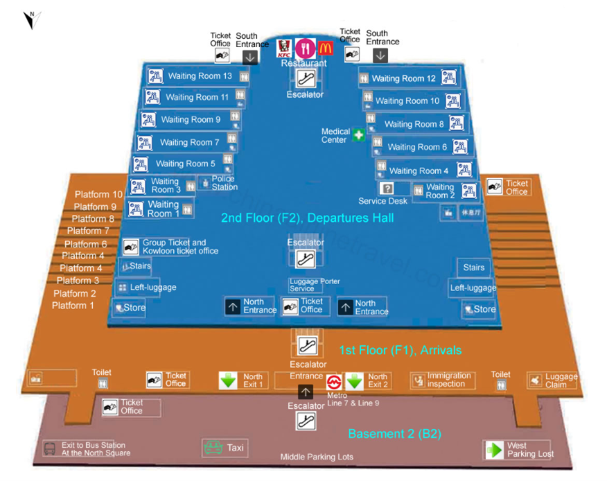 โครงสร้างของแต่ละชั้นในสถานีรถไฟฟ้าความเร็วสูง Beijing West